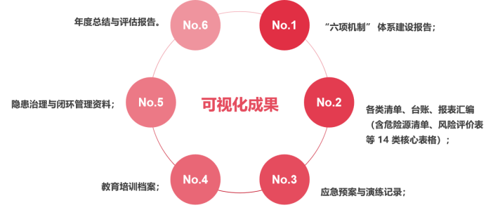 可視化成果交付:服務(wù)期滿后,交付 6 大類標(biāo)準(zhǔn)化成果,形成機(jī)制落地的 “全證據(jù)鏈”: